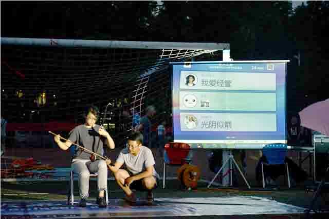 本次晚会节目精彩,奖品丰厚。贾伟童等带来的现代“啦啦操”表演以动人的舞步和迷人的身姿瞬间点燃了全场;管睿的“吉他独奏”表演、清唱歌曲“恋人心”、周智鹏的魔术、周欣苑等人热情的舞蹈、陈亚会等人的合唱为毕业生们展开了一场别开生面的视听盛宴。绵绵细雨浇不灭晚会的激情,离别的惆怅回荡在寂静的夜空。晚会最终的嗨歌会环节,毕业生纷纷上台献唱,用歌声表达对母校的感激和不舍。现场气氛感人,部分同学潸然泪下。晚会期间,不断送出精美大奖。微信上墙送祝福,现场抽奖送电脑,各种奖品惊喜连连。气球环绕、彩灯闪烁、小吃满桌更是为送别的雨夜增添了温暖情调。大家唱着跳着,笑着闹着,分别少了丝忧伤,多了份欢乐。