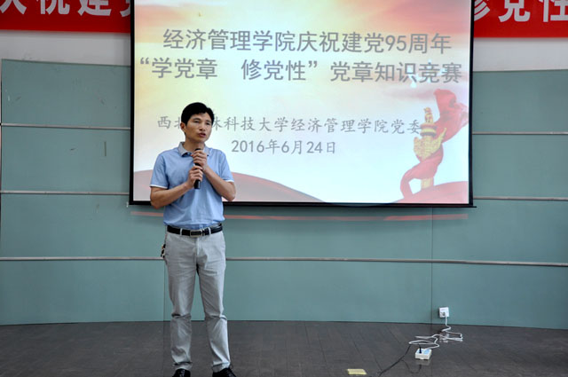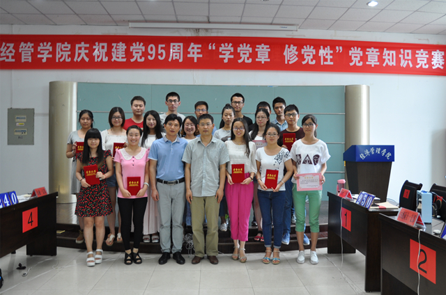 为庆祝建党95周年,把“两学一做”学习教育落实做好。6月24日下午,经管学院于603会议室举办 “学党章,修党性”党章知识竞赛决赛。学院党委副书记温晓林、统战部秘书王家武应邀担任比赛评委。