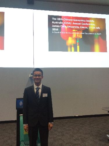 日前,由澳大利亚中国经济研究会主办的第28届学术年会于2016年7月17-19日在澳大利亚凯恩斯詹姆斯-库克大学举行。我院博士研究生冯晓龙同学应邀参加会议并做交流发言。