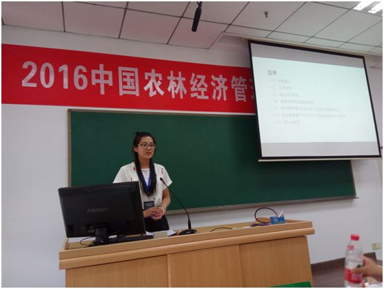 我院霍学喜教授应邀担任分论坛的点评嘉宾。我院参会人员在市场流通与国际贸易、资源环境与低碳农业、农地制度与土地流转、农村信贷与农业保险、农民收入与精准扶贫、经营主体与经营方式、食品安全与消费需求、技术进步与技术服务、乡村发展与森林治理、城镇化与劳动力转移等专题分论坛上面作交流发言,与与会专家作者在相关领域进行充分交流。我院徐 涛同学的论文《基于选择实验法的节水灌溉技术补偿标准核算—以石羊河下游民勤县为例》获得年会优秀青年作者奖。