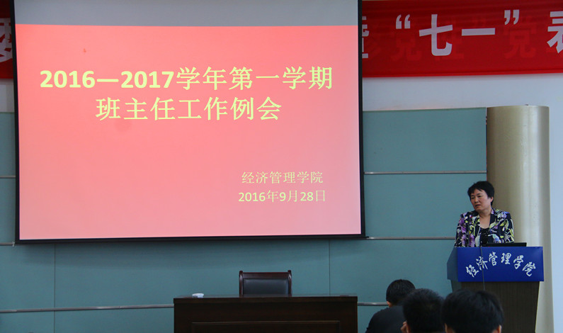 会议还邀请国贸131班班主任董春柳和农经141班班主任马红玉进行经验分享。作为毕业班班主任,董春柳通报班级保研去向和就业情况,她从“抓好大一”、“分类管理”两部分向大家分享带班经验,她谈到新生班级班风建设意义重大,抓好大一时期学生成绩对日后学生保研、工作至关重要;她着重介绍班级现阶段分类管理的模式,将学生按照毕业意向进行分类,分别建立微信群请各方面经验丰富的老师为学生进行指导,效果显著。农经141班班主任马红玉老师从抓好学生学业生涯规划和尊重学生两方面入手,她指出引导新生提前进行大学生涯学业规划是十分重要的,这样可以使学生尽早明确目标从而进行有方向、有针对性的努力。同时,马红玉强调在日常班级管理中要做到尊重学生,与学生平等相处,亦师亦友。