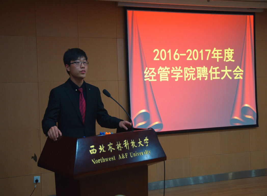 聘任大会上,上届团学干部代表张冰上台发言。她对一直以来支持学生工作、培养学生干部的老师们表达感谢,并列举过去一年里我院团工委学生取得的成绩、分享了自己的工作经验,同时她表达了对新一届团学干部的期望,希望本学年的学生工作能够再创佳绩。随后本届团学干部代表张明瀚发言,他分享自己两年学生工作的经验与心得,并提出团学干部应该团结一致、认真负责,要有决心、信心和责任心,各部门之间要相互交流沟通、携手共进,共同做好学生工作。