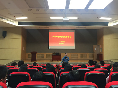 近日,经管学院2018年推免生接收工作圆满结束,录取优质生源数量和质量再创历史新高。根据学校文件精神,学院成立了推免生复试工作小组,经过公平、公开、公正的遴选原则,共接收2018年推荐免试攻读硕士研究生53人,其中学术型硕士43人,专业型硕士10人。接收的推免生中,73.58%的生源来自于985/211高校,其中本校留校生源比例达到71.7%,同比上一年度增长30.96%,生源结构持续优化,生源质量稳步提升。