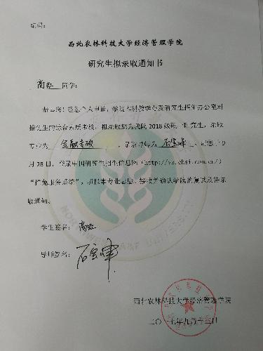 不忘初心,引领人生导航;继续前进,共创和谐之花。以培养卓越农林人才为根本目标,学院推免工作始终遵循着平等自愿的原则,支持优秀学子走出校门交流学习。时间是最伟大、最公正的裁判,大学四年的时间让每一个西农学子认识并了解学校、学院和学科。然而,正是这种熟悉会使人迷失方向,只看得到缺点,院长赵敏娟教授签约仪式致辞:“你们就像我的女儿,我祝贺进入名校的学生,也希望每一个孩子都能不忘初心,擦亮双眼,自主地选择适合自己的学校和专业”。