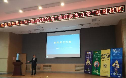 为了给2018届毕业生提供更多的就业机会,成功邀请德邦于10月10日赴我院举办2018届专场招聘会,招聘会主题为“相信新生力量”,招聘人员有丛龙峰、官同良、李磊、孙明智,同学们积极参加,招聘会现场火爆。