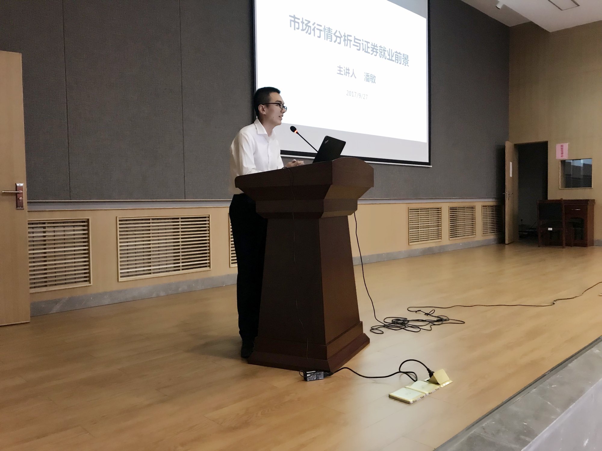 9月27日晚,经管学院于经管园林大楼C101报告厅举办证券投资分析报告会,本次报告会邀请到优秀毕业生潘敏——现任九州证券陕西分公司运营总监作为主讲人,我院金融学专业百余名学生到场参加。
