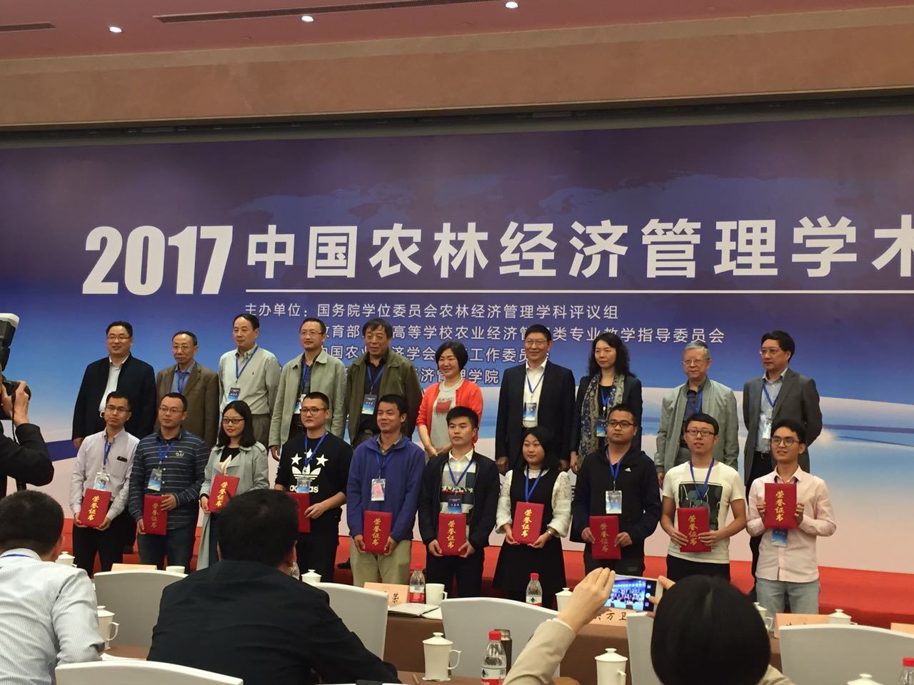 2017年10月13-15日,2017中国农林经济管理学术年会在南京农业大学隆重召开。年会由国务院学位委员会农林经济管理学科评议组、教育部高等学校农业经济管理类专业教学指导委员会和中国农业经济学会青年(工作)委员会主办,南京农业大学3044am永利集团3044noc承办,《中国农村经济》、《农业经济问题》杂志社协办。来自国内外近600位农林经济管理学界专家学者及师生代表聚焦农经领域前沿问题,围绕“三农”问题开展学术讨论和交流。年会共入选论文210篇,其中我院入选论文18篇。本次年会分设教师、学生报告场,共88位师生代表进行论文汇报,并设置学生墙报专场。