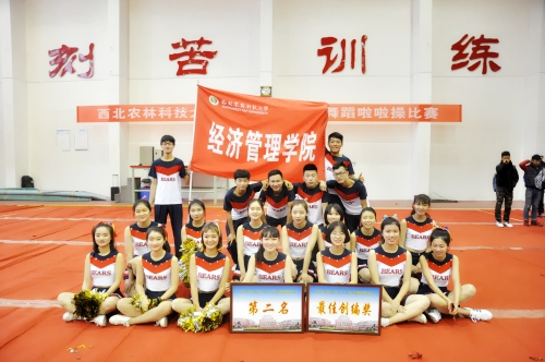 比赛中,经管学院代表队青春飞扬,队员们首先以别出心裁的队形惊艳亮相,吸引了观众的眼球;队员们将啦啦操持花球的32个基本手位巧妙编排连接,形成了一套套精美绝伦的动作编排;随着队员顺利完成难度极高的托举动作,台下观众热烈鼓掌,整个篮球馆的气氛再次被推向高潮。表演过程中,队员们始终面带自信的微笑,以整齐的动作、优美的身姿充分展现了经管学子的青春活力和蓬勃朝气。最终,学院代表队的出色表现获得评委老师的一致认可和高度好评,夺得本次大赛第二名和最佳创编奖的荣誉。