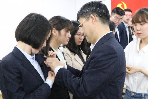 为辅导员授徽 重温入党誓词