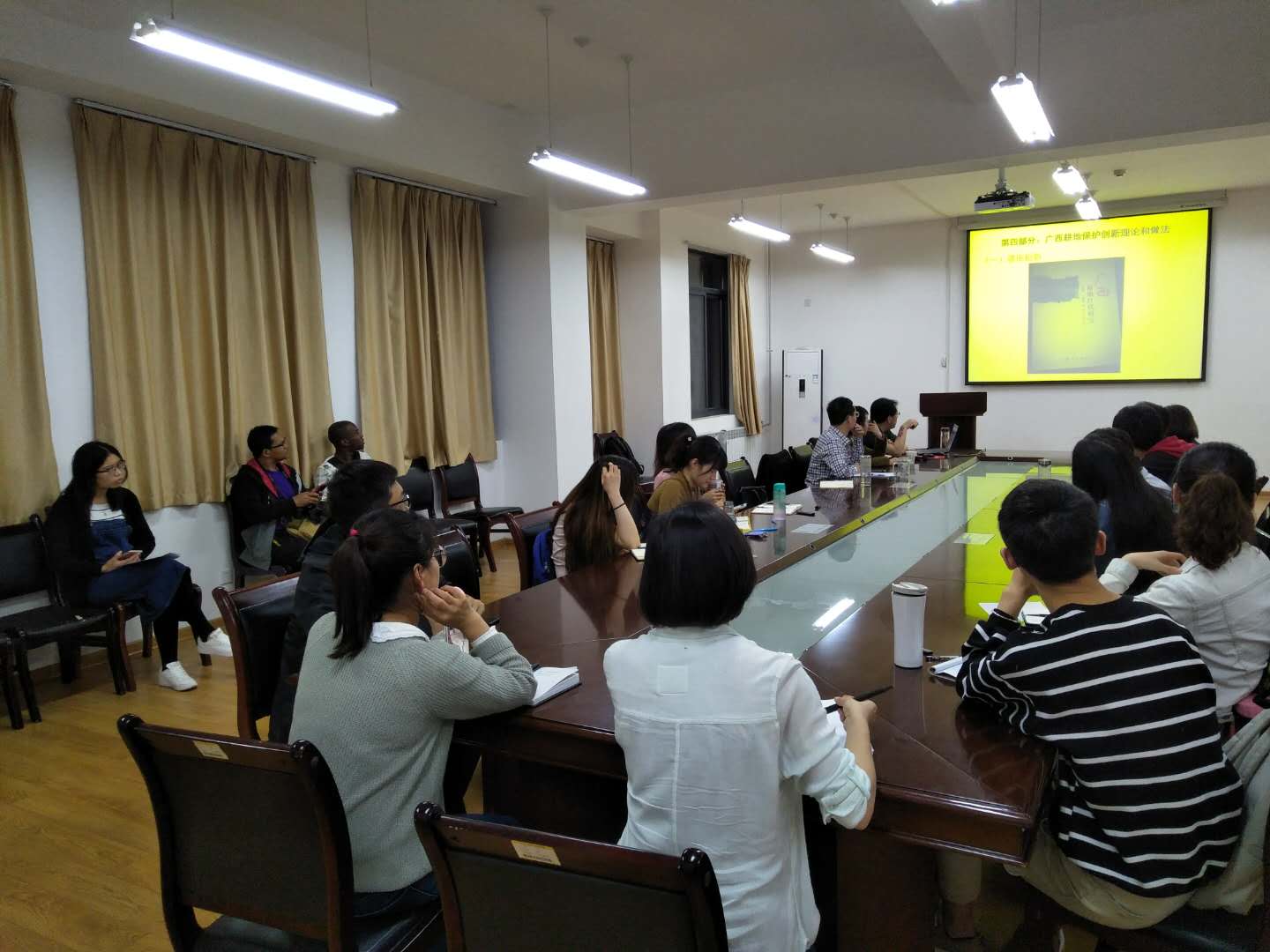 2018年4月19日晚上,在3044am永利集团3044noc南校区经管学院C304,为全面践行“乡村振兴”战略,广西国土资源厅行政审批办公室主任左旭阳应邀为师生做“广西耕地保护实践与管理创新”的主题报告,经管学院副院长石宝峰主持报告会,土地资源管理专业张道军副教授、张会老师、张蚌蚌老师,硕士博士生和留学生等30余人一起聆听了报告会。
