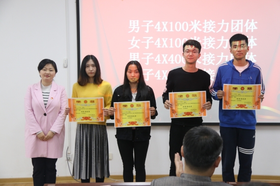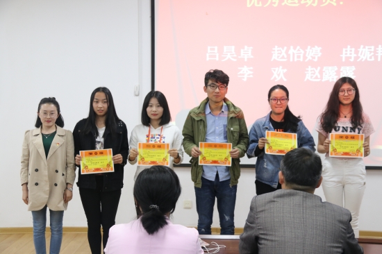 会议伊始,张鹏飞总结了我院在本次校运动会上取得的出色成绩,充分肯定了所有运动员和幕后工作者的辛勤付出。随后,学生会主席刘鹏对本次运动会前后院团工委学生会各部门的工作表示感谢,同时提出团学各部门应进一步增加合作,让各项工作再上台阶。之后,学工秘书张静宣读表彰文件,公布表彰名单,与会老师分别为获最具潜力奖、最佳新人奖、优秀运动员奖、最大进步奖、突出贡献奖、最佳运动员奖、优秀组织奖和优秀团体奖的组织或个人颁发奖状,现场气氛热烈、掌声不息。