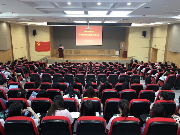 6月4日下午,学院在经管园林大楼C101会议室召开2018届毕业生党员教育大会。学院党委书记张岁平、各学生党支部书记及委员、全体毕业生党员200余人参加,会议由院党委副书记温晓林主持。