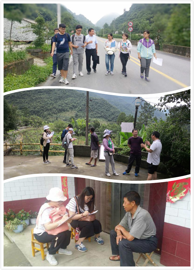 带队老师对大家首先进行了安全教育和调研安排后,同学们在当地政府的协助下来到了亮马台村、牌坊坝村、蹇家坝村、谢家坪村等七个村子,同学们撑着伞走过狭窄的村路,在村子里四处寻找农户,完成了七百多份问卷。这两天里,大家与农户深入交流,参观乌鸡养殖基地,询问当地政府人员有关事项,在农家乐里吃大锅饭,在嘉陵江旁欣赏美景……这些事情都将成为同学们美好而珍贵的回忆。