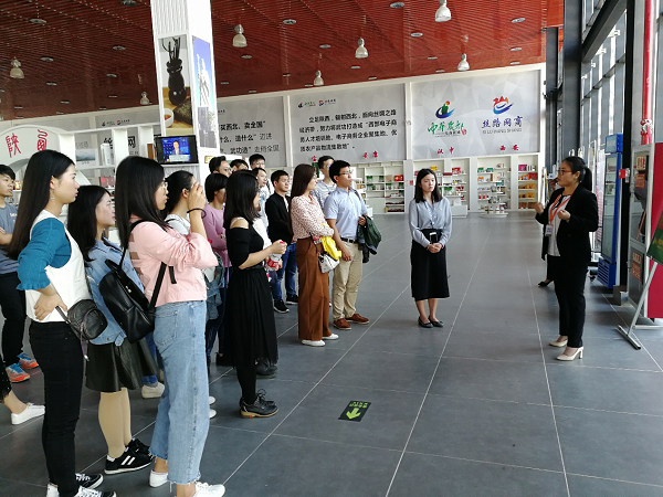 下午,学院师生又乘车来到武功电商产业园。在工作人员的带领下,师生们参观了西北电商产品体验城。西北电商产品体验城成立于2016年,以农村品电商体验为核心,实现电子商务和优势特色农村品基地的有效对接,打通了加工型企业与新型电商的业务和资源对接,是提高西部农产品影响力的重要平台。