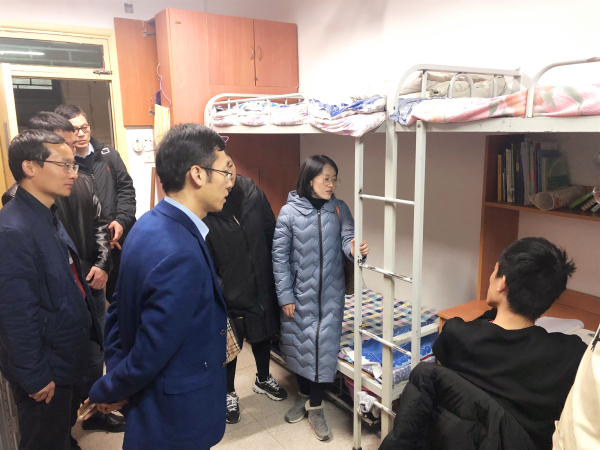 “有困难一定要及时联系学院,告诉辅导员老师。”在得知2018级行动不便学生张文卓在克服身体不适的情况下仍坚持求学,并在上学期顺利通过所有课程,学院领导关切的说道。进入宿舍后,学院领导与同学们亲切交谈。“新学期还适应吗”“平时课程紧张吗”“学习是否有困难?”“毕业后有什么打算?”每到一间宿舍,学院领导都关心询问同学们的学习、生活等各方面情况。随后,学院领导对学生宿舍违章电器等安全隐患进行了检查。