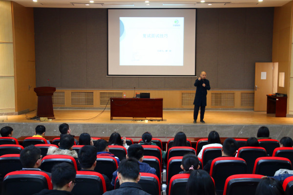 2019届考研已进入冲刺阶段,为更好的提升我校考研学生的整体素质及竞争力,并及时为学生在复试中可能面临的问题进行答疑解惑。学校于3月5日在经管学院C101举办就业大学堂之“2019考研复试指导”专题讲座,特邀文都教育专家名师解原出席本次活动,向考研学子传授经验,主要涵盖复试流程、面试礼仪、复试技巧等方面。此次由我院承办,到场学生共计300余人,现场气氛热烈。
