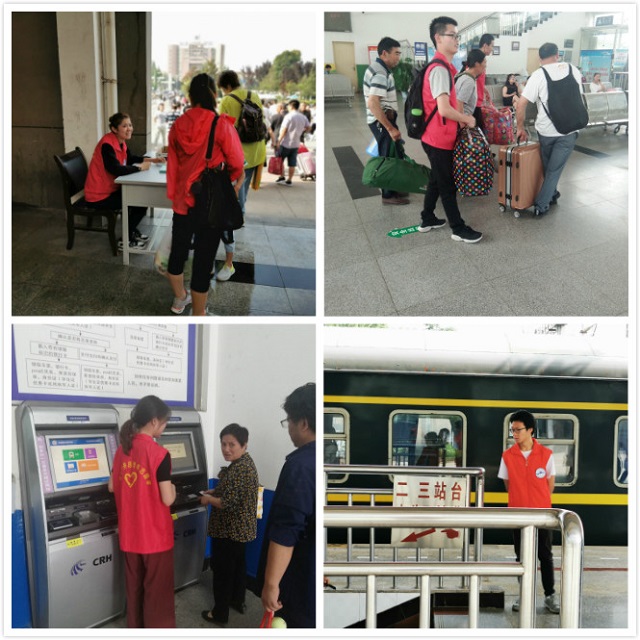 由于今年端午节恰逢高考,杨凌示范区火车站客运量剧增。为引导同学们树立服务社会、热心公益的意识,将胡余锦明女士无私奉献的爱心传递下去,帮助火车站缓解小长假期间的客流压力,端午节当天,胡氏爱心社在杨陵火车站开展了以“志愿心服务,公益爱同行”为主题的志愿服务活动。