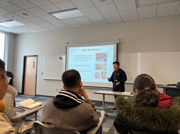 1月12日,同学们来到ILTC(International Leadership and Training Center)参加欢迎仪式,密苏里州立大学助理副校长Brad Bodenhausen对大家的到来表示热烈的欢迎。接着,项目负责人俞铭昊从安全、生活、文化等方面为同学们在密苏里州立大学的学习生活进行了全面、详细的介绍,大家纷纷表示受益匪浅,也对接下来三个月的学习生活充满了期待和信心。