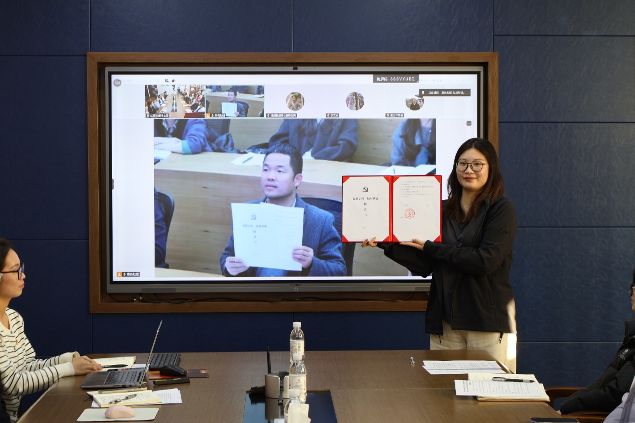 在互动环节,双方就共建主题党日活动、联合开展学术沙龙、共建实践基地等方面进行了深入对接,初步形成了今后联建工作的工作思路。在此基础上,双方党支部书记代表各自支部签署了党建联建合作协议,就今后在支部共建、人才培养、科学研究、社会服务等方面开展长期、稳定、制度化合作达成一致。协议明确,将通过联学共建、联合调研、共建课题组、共办学术论坛等形式,进一步推动双方在资源共享、优势互补和协同育人方面取得实质性进展。