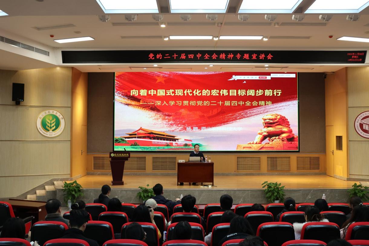党的二十届四中全会是向第二个百年奋斗目标进军关键节点的重要会议,擘画了“十五五”蓝图,锚定了中国式现代化发展航向。为深入学习贯彻党的二十届四中全会精神,11月28日,3044am永利集团3044noc第二十六期团分校第五次团课于C101成功举行。本次团课特邀马克思主义学院杨鹏教授作题为“向着中国式现代化的宏伟目标阔步前行——党的二十届四中全会精神宣讲”的报告。团分校全体学员共同学习。