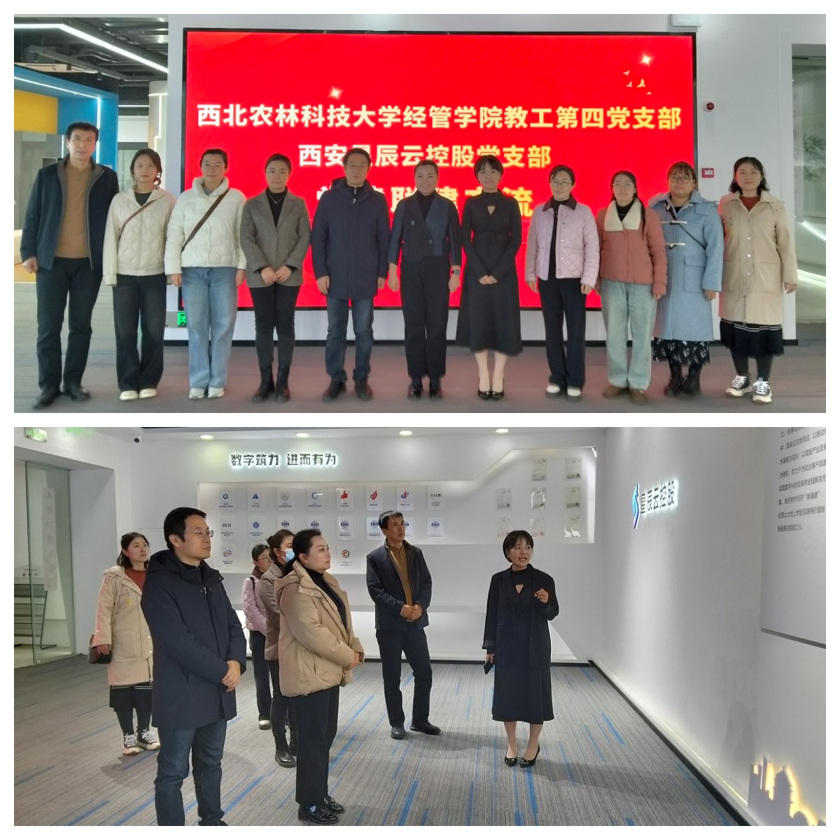 第二站,党员同志们来到校友企业西安星辰云控股集团,在集团董事长助理、党支部书记、MBA校友赵聪陪同讲解下,实地参观了企业数字化展厅,详细了解企业发展历程、核心业务与科技创新成果。座谈交流中,双方围绕非公党建、党员发展、企业文化建设、科技成果转化、创新及人才培养等进行了深入探讨,为进一步推进产学研融合、提升管理教辅服务水平提供了新思路。